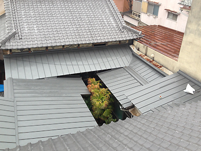 従来の瓦と変わらない厚みに対し,重さは半分以下【ステンレス銅板】
